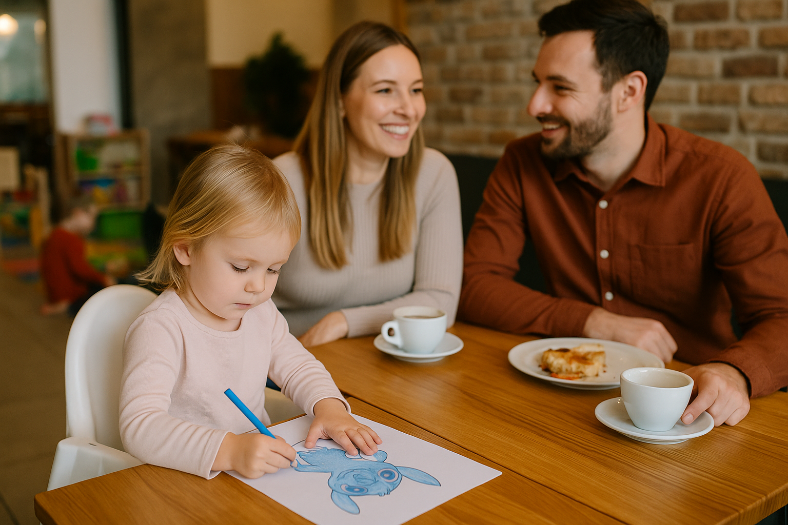 Realita je jednoduchá: dítě většinou nekřičí proto, že chce zlobit. Křičí, protože se nudí. a zlobí. A když se dítě nudí a zlobí, začíná se zlobit i rodič – a jakmile je rodič nervózní, jídlo je pryč, účet zaplacený a podnik opouští rychleji, než ti stihne pokladní systém vytisknout účtenku.