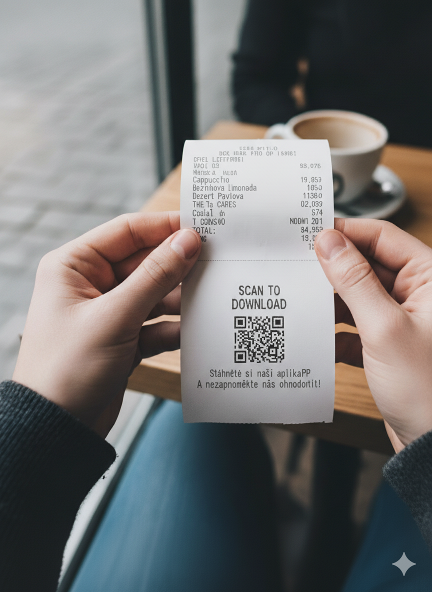 - Přidej QR kód na účtenku. Host může po zaplacení jedním skenem napsat hodnocení.